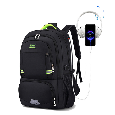 حقيبة ظهر يومية كبيرة من البوليستر الأسود للرجال والمراهقين حقائب مدرسية